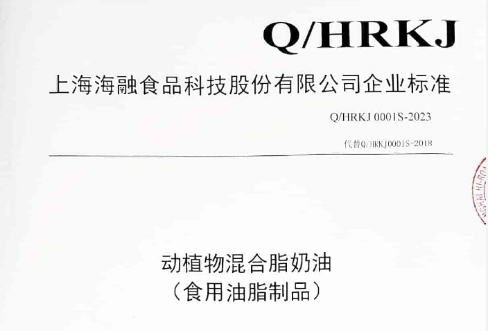 九州ku游官网科技企业标准:动植物混淆脂奶油(食用油脂制品)